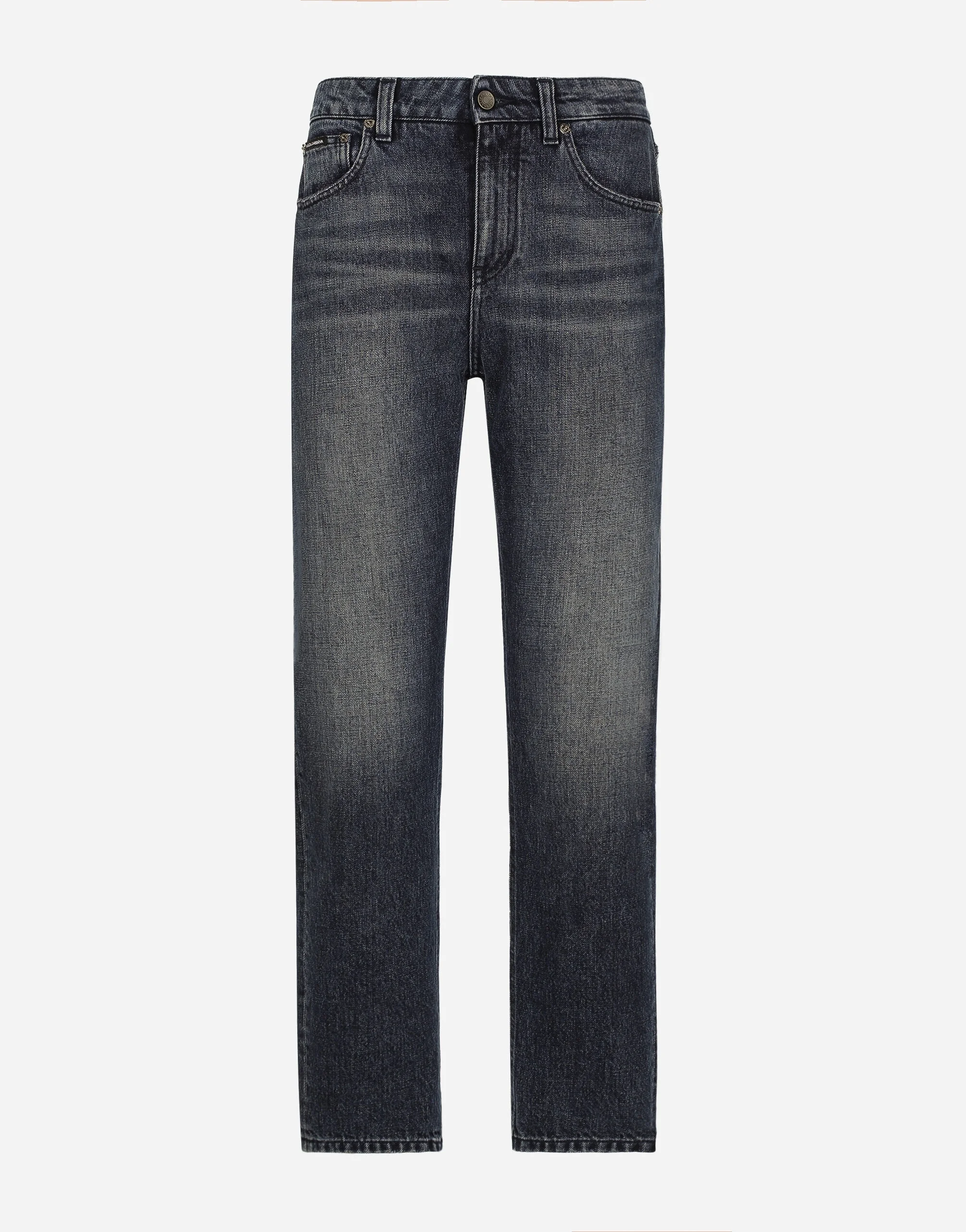 The spirit of the 1960s is taking over the new Flower Power collection. The focus is a head-to-toe floral look built around pairing and layering rose, anemone and floral bouquet maxi-prints. A cosmopolite poised between playful and sexy, this woman interprets the austerity and elegance of the 1960s, harking back to boldly opulent imagery that here at Dolce&Gabbana is condensed and reinterpreted through silhouettes, ample proportions and airy shapes, bringing femininity and sensuality to the forefront. Cotton denim boyfriend jeans: • Blue • Low rise • 5 pockets • Branded metal and leather tag • Branded label on the coin pocket • Inner leg: 75 cm • Hem: 18 cm • Zipper and branded metal button fastening • The model is 175 cm tall and wears a size IT 40 • Made in Italy External composition: 100% Cotton
