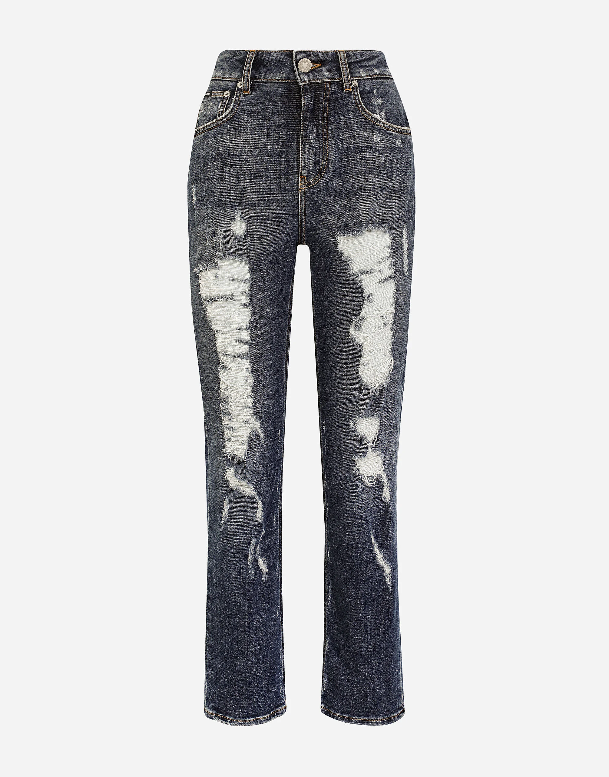 • High-waisted • 5 pockets • Branded metal and leather plate • Branded label on the coin pocket • Inner leg. 75 cm - 29.5 inches • Hem. 18 cm - 7.1 inches • Metal button with logo and zipper • The model is 175 cm - 68.9 inches tall and wears a size IT 40 • Made in Italy Care And Details External composition: 98% Cotton 2% Spandex