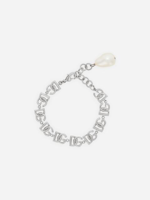 The Dolce&Gabbana Jewelry Collection is filled with unique pieces boasting great craftsmanship. Contemporary accessories with original and exclusive DG logo details, featuring different plated finishes, will be perfect for finishing off any look with great style. Bracelet with multiple DG logos: • Gold • Clasp fastening • Acrylic glass teardrop pearl • Nickel-free and hypoallergenic materials • Engraved logo • Made in Italy Composition: 90% Brass 10% Acrylic glass