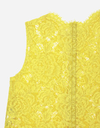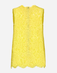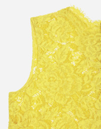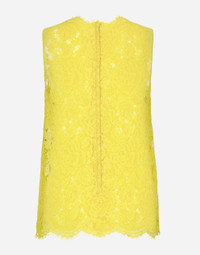 The DNA collection is distinguished by timeless shapes, bringing together three concepts: Sicilian flair, tailoring and sensuality. Nero Sicilia black and optical white predominate and pair with colors that catapult us onto the island of Sicily and make us dream. The designers channel the timeless wardrobe made up of creations that are instantly unmistakable in their simplicity, presenting us with sophisticated beauty loaded with meaning and symbolism that transcends fashion. Branded floral stretch cordonetto lace top: • Yellow • Round neck • Sleeveless • Regular fit • Stretch silk crepe de chine top • Zipper fastening at the back • The piece measures 62 cm from the center back on a size IT 40 • The model is 175 cm tall and wears a size IT 40 • Made in Italy External composition: 43% Viscose 34% Cotton 23% Polyamide Internal composition: 91% Silk 9% Spandex
