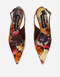 Iconic and the epitome of femininity, flowers are the stars of the new Flower Power collection. Made from printed brocade, these Lollo slingbacks are feminine and elegant. Brocade slingbacks with abstract flower print: • Multi-colored • 60-mm heel • Printed leather insole with branded label • Branded leather sole • Item comes with a branded dust bag • Made in Italy “The difference in the print placement that you may find on this product is a feature of Dolce&Gabbana’s “Handmade” pieces. A detail that makes every garment or accessory unique and exclusive.” External composition: 56% Viscose 44% Cotton Internal composition: 81% Goatskin 11% Viscose 8% Cotton