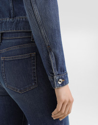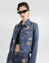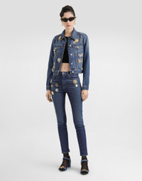 This denim jacket is ideal for those looking for a versatile and fashionable garment, perfect for completing any casual look with a touch of originality and style. Denim jacket: • Multi-colored • Center cut and front side panel • Sleeve side cut with cuff and slit • Patch pocket and welt pocket on the front • Button opening at center front • Brooches on the front • The model is 175 cm tall and wears size 40 IT • Made in Italy External Composition: 100% Cotton