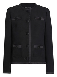 button-fastening jacket Highlights - Black - Round neck - Button fastening - Satin ribbon detailing - Decorative pockets - Long sleeves Made in Italy Composition Virgin Wool 86%, Silk 11%, Polyester 3% Washing instructions Read Manufacturer Guidelines