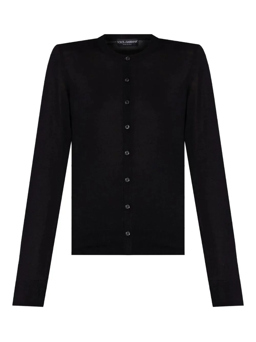 DNA button-up cardigan Highlights - Black - Cashmere-silk blend - Front button fastening - Long sleeves - Round neck - Straight hem - Internal logo patch Made in Italy Composition Cashmere 70%, Silk 30%