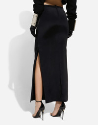 The absolute star of the new “Black Sicily” collection is black, the color of immortal elegance that encapsulates the most diverse facets of Dolce&Gabbana. The new black is not only rebellion, but also elegance, austerity and rigor, timeless in its absolute strength, it makes all looks even more attractive, seductive and sophisticated, Sicily black thus becomes the symbol of absolute beauty. Stretch cady calf-length skirt: • Black • Low rise • Side pockets • Side slits • Unlined • Rear zipper and hook-and-eye fastening • The piece measures 98 cm from the waist down on a size IT 40 • The model is 175 cm tall and wears a size IT 40 • Made in Italy External composition: 65% Acetate 29% Polyamide 6% Spandex