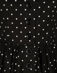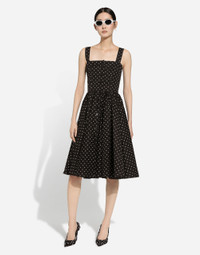 The FW24/25 Mambo Collection is rewriting the rules of Italian elegance, merging the sophisticated style of the 1940s and 1950s with the iconography of American pin-ups. The unmistakable polka-dot motif takes center stage, coming in a variety of shapes and sizes and adorning tulle, charmeuse, twill, silk and poplin, giving life to looks distinguished by black and white accessories and details. An homage to the beauty of Italy and its traditions, the distinctive details of Dolce&Gabbana’s creations. Calf-length cotton poplin dress with polka-dot print: • Black • Square neckline • Sleeveless with shoulder straps • Partially lined in cotton • Rear zipper and hook-and-eye fastening • The piece measures 92 cm from the center back on a size IT 40 • The model is 175 cm tall and wears a size IT 40 • Made in Italy The difference in the print placement that you may find on this product is a feature of Dolce&Gabbana’s “Handmade” pieces. A detail that makes every garment or accessory unique and exclusive. External composition: 100% Cotton Internal composition: 97% Cotton 03% Spandex