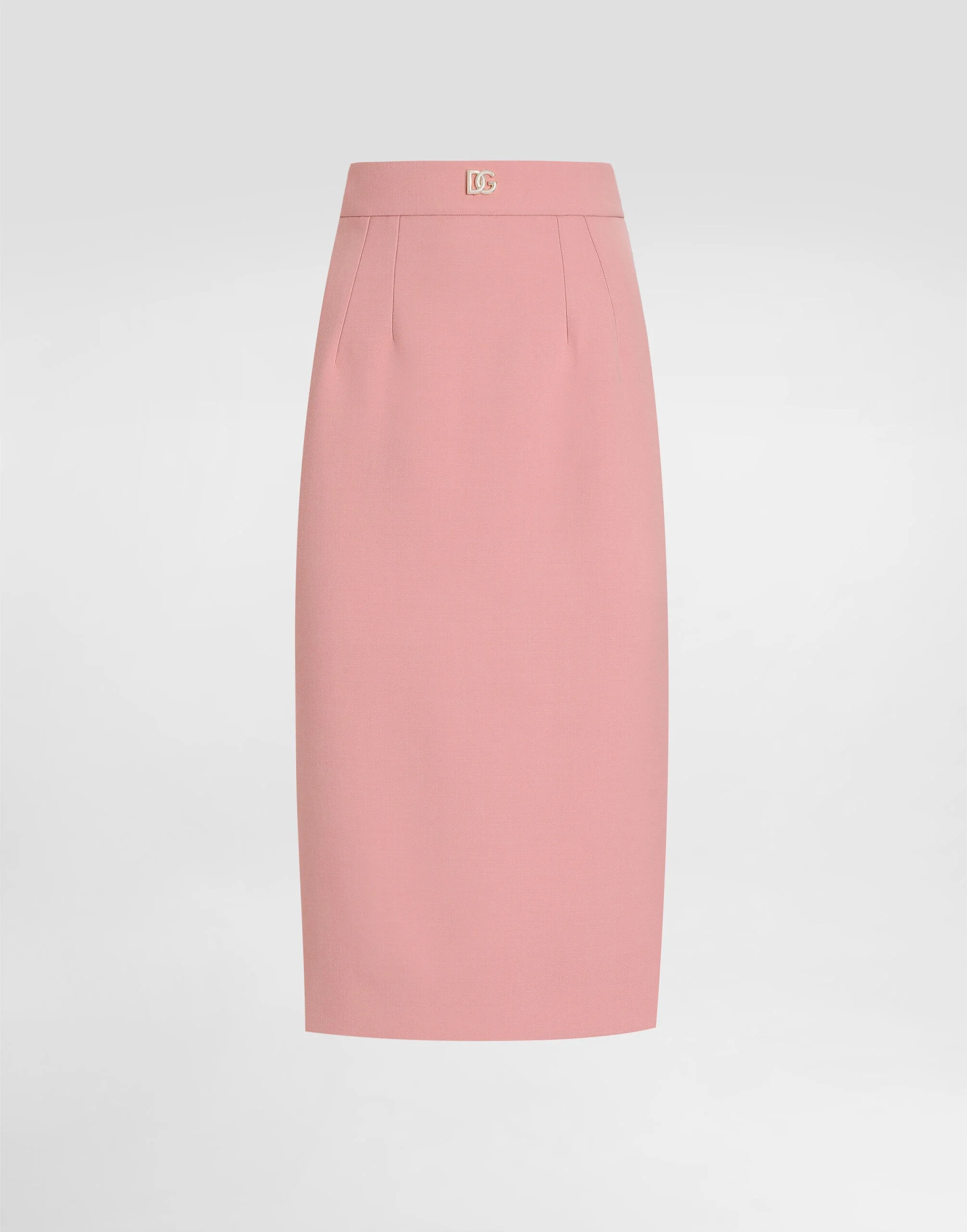 The Women’s DNA Collection is introducing a new side to femininity, which comes in shades of rose quartz, poised between sheerness and opacity, lightness and structure, formality and sensuality. Geometric Dolce Jackets, jacquard pajamas and floral brocade dresses intertwine with ultra-romantic designs. The DG print becomes an iconic statement, while Cordonetto lace and hints of Sicily Black embody the essence of a determined yet romantic femininity. Calf-length double wool crepe pencil skirt with DG logo: • Pink • High-waisted • Tonal stretch silk satin lining • Rear zipper and hook-and-eye fastening • The piece measures 70 cm from the waist down on a size IT 40 • The model is 175 cm tall and wears a size IT 40 • Made in Italy External composition: 100% Virgin Wool Internal composition: 92% Silk 08% Spandex