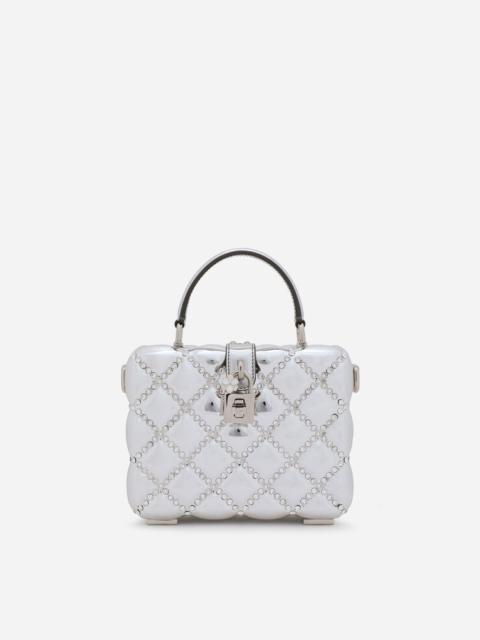 • Padlock fastening in light gold-plated metal with enamel flower embellishment • Detachable crocodile-print calfskin strap • Calfskin lining • Inner pocket with concealed magnetic fastening and a card slot fastening • Item comes with special packaging • Measurements. 14.5 x 19 x 7 cm • Made in Italy Care And Details External composition: 80% Viscose 15% Calfskin 5% Cotton Internal composition: 90% Calfskin 10% Poplar Plywood