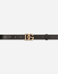 Calfskin belt with bejeweled DG logo