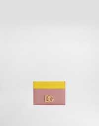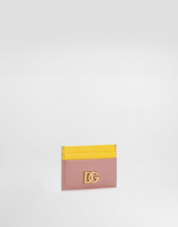 Practical and understated, this card holder comes in calfskin. Ideal for carrying in your pocket or in smaller bags. Polished calfskin card holder: • Pink and Yellow • Four front card slots and one on top Vintage plated brass • Measurements: H7.5 x W10 x D0.5 cm • Made in Italy External composition: 100% Calfskin Internal composition: 100% Viscose