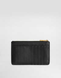 An essential accessory for those who love the combination of elegance and functionality. The woven DG logo card holder is perfect for organizing your cards in style. Calfskin logoed card holder: • Black • Zip closure • Vintage brass plating • External customization with DG crossed torchon logo • Internal customization with logoed flag label • Item equipped with a logo bag and a logoed box • Measurements: H9 x W13.5 x D1 cm • Made in Italy External Composition: 100% Calfskin Internal Composition: 100% Viscose