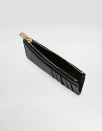 This calfskin card holder with zipper features the light gold-plated DG logo. Practical and compact, it comes with an accordion compartment with top zipper: • Five card slots and a flat pocket on the back • Flat front pocket • A coin pocket on top with zipper and branded slider • Measurements: 9 x 13.5 x 1 cm • Made in Italy Care And Details External composition: 100% Calfskin Internal composition: 100% Viscose