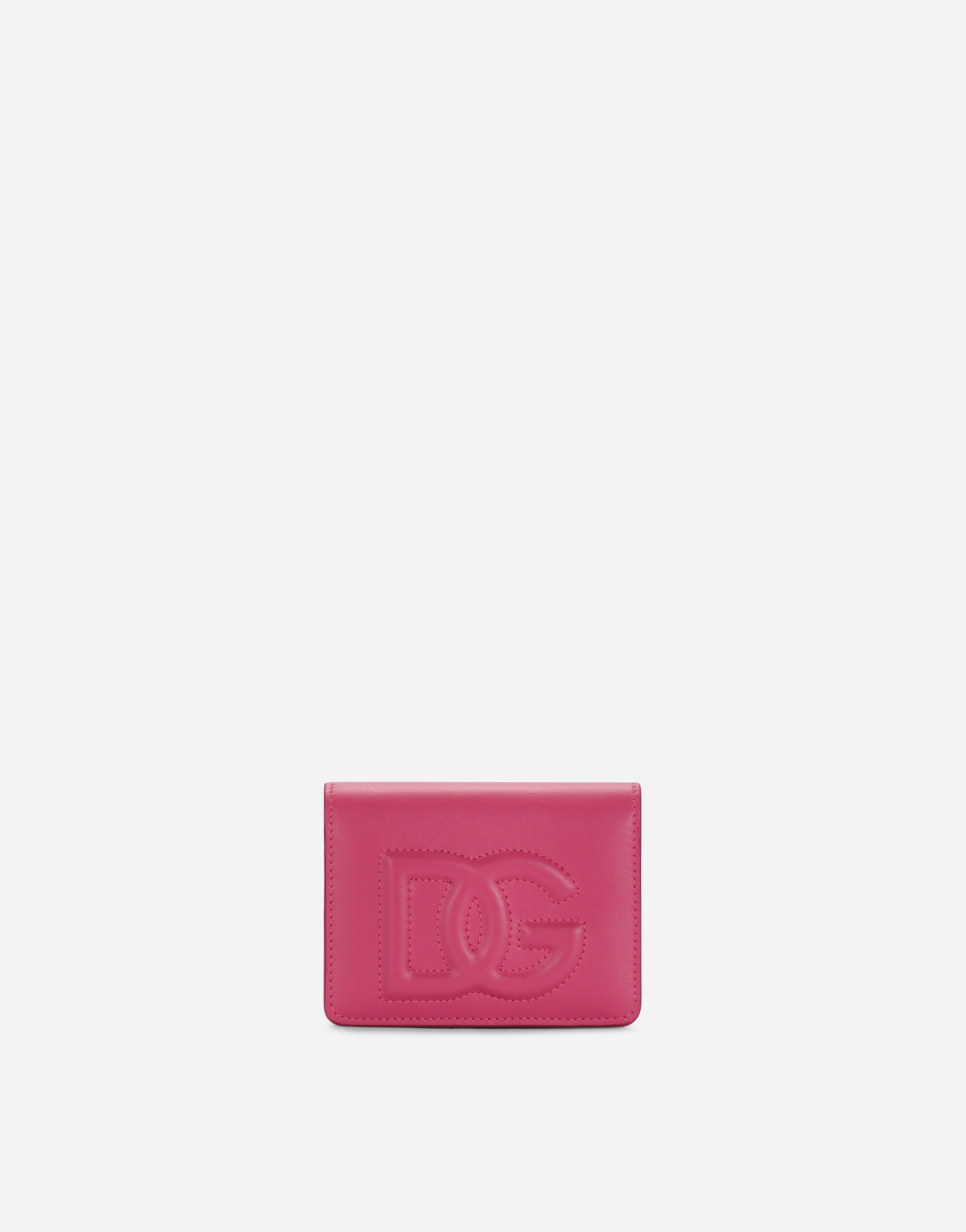 Practical and compact, this new wallet comes in calfskin and features the quilted, 3D-effect DG logo. Its small size means it is perfect for the smallest bags too. • Front flap with hidden press-stud fastening • Five card slots • Inner coin pocket with zipper and branded slider and flat rear compartment • One bill compartment on top • Measurements: 8.5 x 11 x 2 cm • Made in Italy External composition: 100% Calfskin Internal composition: 90% Calfskin 10% Viscose
