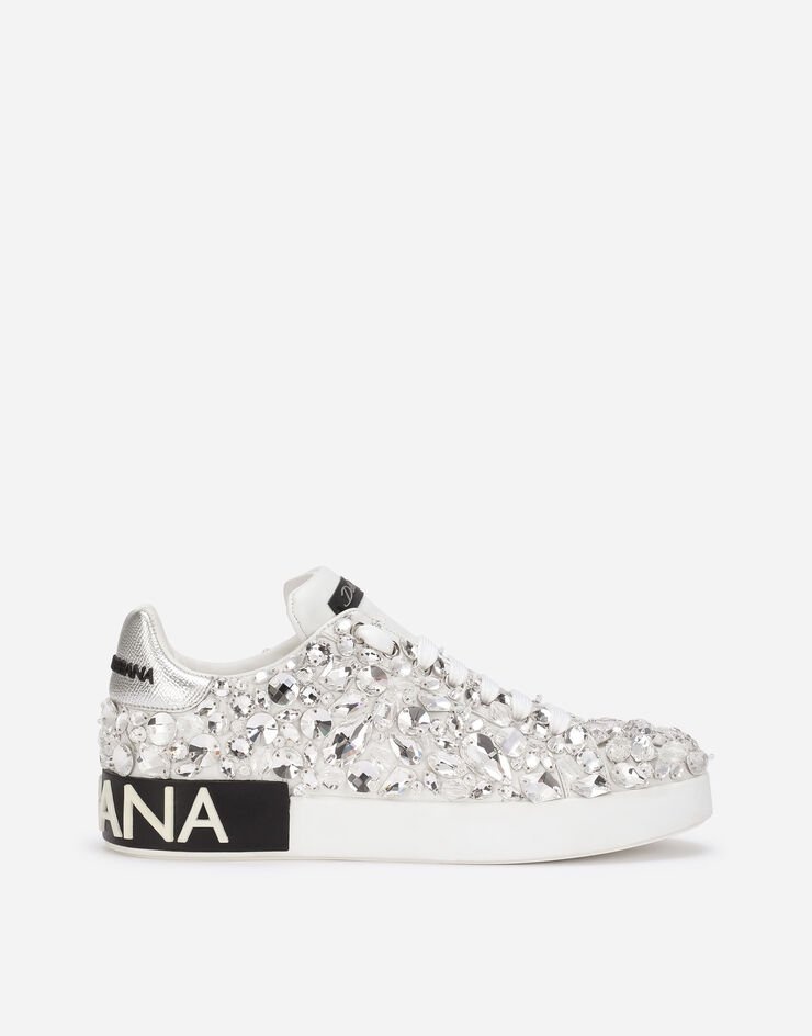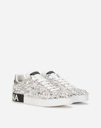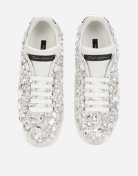 Coming in a particularly fine version, these calfskin nappa Portofino sneakers come covered in crystals of different sizes and feature a contrasting laminated Dauphine calfskin heel cup: • Calfskin upper with all-over gemstone appliqués • Branded label • Flat laces • Calfskin footbed with branded label • Branded rubber sole • Item comes with themed packaging • Made in Italy Care And Details External composition: 100% Calfskin