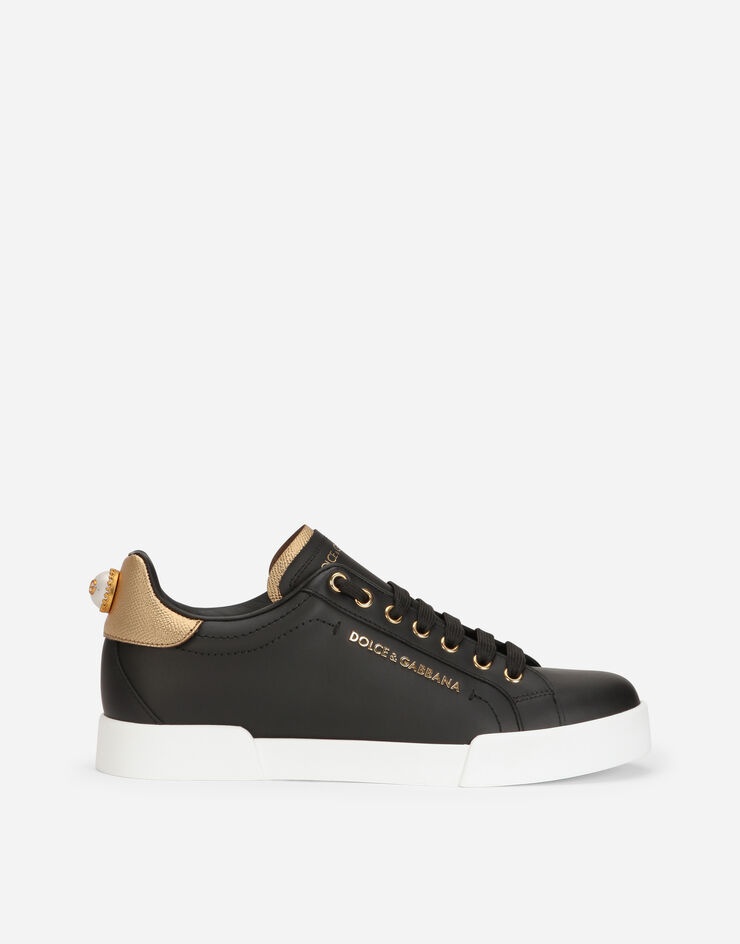 The forerunner of all Dolce&Gabbana sneakers, the Portofino sneakers come made entirely from calfskin nappa with light-gold plated metal DOLCE & GABBANA lettering and branded pearl detailing on the heel: • Calfskin upper with contrasting heel cup and branded pearl detailing • Branded label • Flat laces • Calfskin footbed with branded label • Branded rubber sole • Item comes with themed packaging • Made in Italy Care And Details Composition: 100% Calfskin