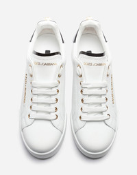 The forerunner of all Dolce&Gabbana sneakers, the Portofino sneakers come made entirely from calfskin nappa with light-gold plated metal DOLCE & GABBANA lettering and branded pearl detailing on the heel: • Calfskin upper with contrasting heel cup and branded pearl detailing • Branded label • Flat laces • Calfskin footbed with branded label • Branded rubber sole • Item comes with themed packaging • Made in Italy Care And Details External composition: 10% Sheepskin 5% Natural Rubber 80% Calfskin 5% Polyester Internal composition: 100% Calfskin