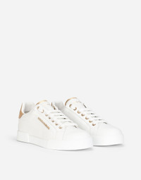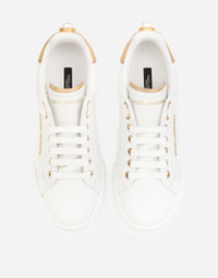The forerunner of all Dolce&Gabbana sneakers the Portofino sneakers come made entirely from calfskin nappa with light-gold plated metal DOLCE & GABBANA lettering and branded pearl detailing on the heel. • Calfskin upper with contrasting heel cup and branded pearl detailing • Branded label • Flat laces • Calfskin footbed with branded label • Branded rubber sole • Item comes with themed packaging • Made in Italy External composition: 100% Calfskin Internal composition: 10% Sheepskin 5% Natural Rubber 80% Calfskin 5% Polyester