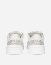 Calfskin New Roma sneakers with fusible rhinestones: • White • Flat laces • Calfskin footbed with branded label • Branded rubber sole and bottom assembly • Item comes with a branded dust bag • Made in Italy Care And Details External composition: 100% Calfskin Internal composition: 90% Lambskin 10% Goatskin