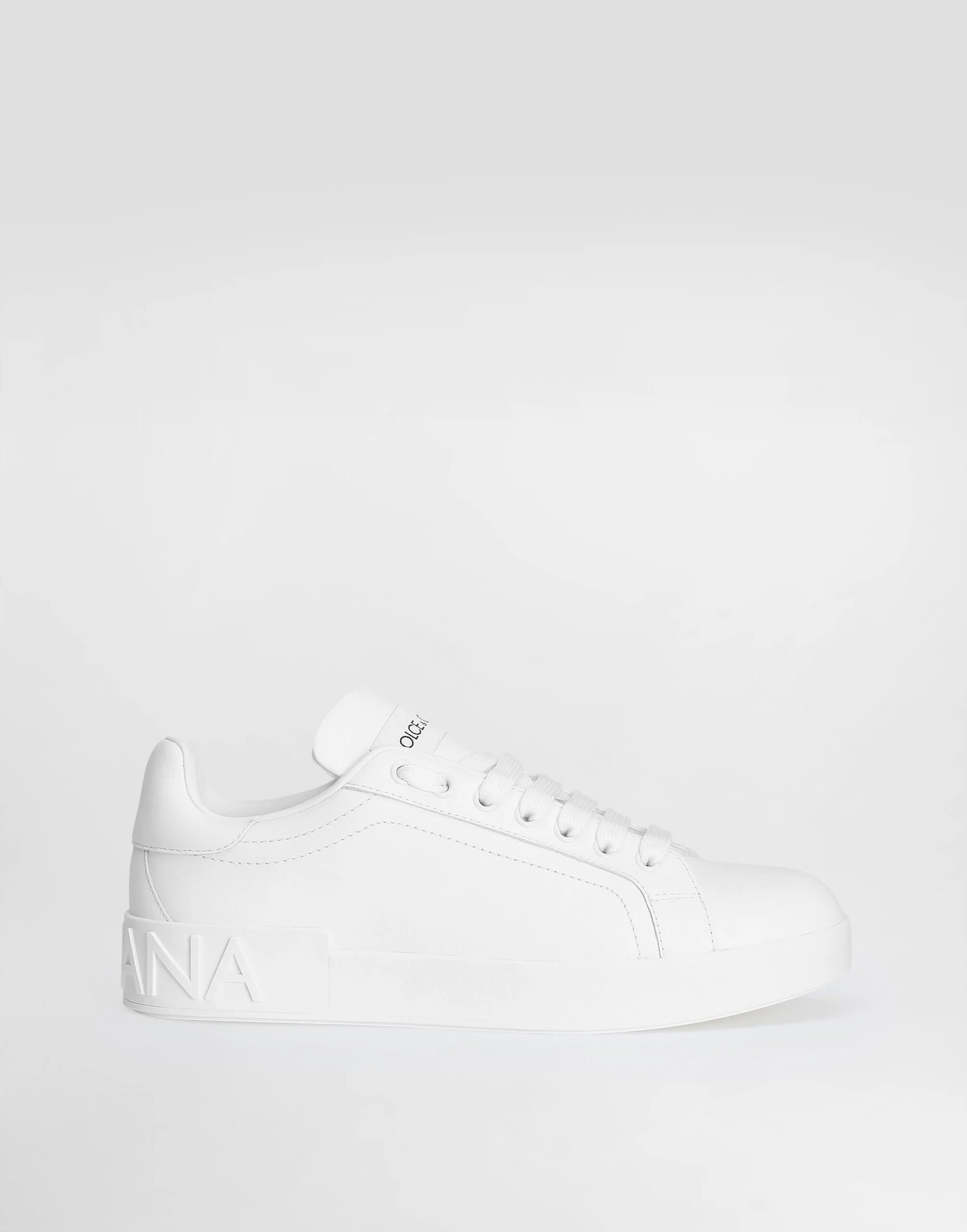 The forerunner to all Dolce&Gabbana sneakers, these Portofino sneakers come in 100% calfskin nappa and feature a spoiler on the back with micro-injected rubber logo. Calfskin Portofino sneakers: • White • Flat laces • Calfskin footbed with branded label • Rubber bottom with branded spoiler • Branded rubber sole • Made in Italy External composition: 100% Calfskin Internal composition: 80% Lambskin 10% Goatskin 7% Polyester 3% Natural Rubber