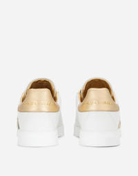 These iconic Portofino sneakers in calfskin nappa leather come in a new version. Featuring understated lines, they are embellished with the DG logo patch in two-tone calfskin: • Calfskin upper • Foiled Dauphine calfskin heel cup with lettering • Flat laces • Calfskin footbed with branded label • Rubber bottom assembly and branded sole • Item comes with themed packaging • Made in Italy Care And Details External composition: 80% Calfskin 20% Lambskin Internal composition: 80% Lambskin 10% Goatskin 7% Polyester 3% Natural Rubber