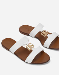 The 60s era is the star of the new Capri collection, where bright and understated white becomes synonymous with elegance and lightness. Calfskin Bianca sliders with DG logo: • White • Branded leather sole and bottom assembly • Item comes with a branded dust bag • Made in Italy External composition: 100% Calfskin Internal composition: 100% Goatskin