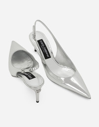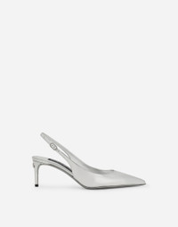 The Holiday collection is an extraordinary story that brings together two worlds: Dolce&Gabbana and the great stars from Hollywood’s Golden Age, who were recognized and admired for their wonderful dresses and extraordinarily glamorous looks. The designers are reinventing and making us dream in front of tailored pieces with breathtaking elegance and visual impact, a sparkling mood that will give everyone a modern, recognizable and unique allure on any occasion. Mirrored calfskin slingbacks: • Silver • 60-mm heel with DG logo • Foiled kidskin insole with branded label • Foiled leather sole with logo • Item comes with a branded dust bag • Made in Italy
