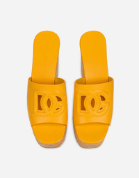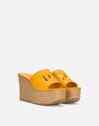 Calfskin wedge sandals with DG logo: • Yellow • 60-mm platform wedge • Kidskin insole with debossed label • Woven rope wedge • Branded rubber sole • Item comes with a branded dust bag • Made in Italy Care And Details External composition: 55% Calfskin 45% Jute Internal composition: 100% Calfskin