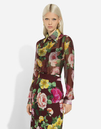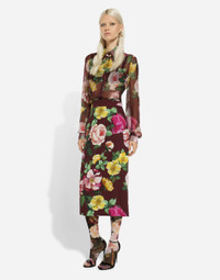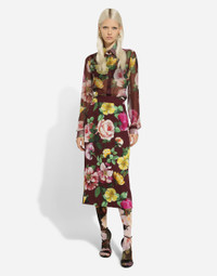 The spirit of the 1960s is taking over the new Flower Power collection. The focus is a head-to-toe floral look built around pairing and layering rose, anemone and floral bouquet maxi-prints. A cosmopolite poised between playful and sexy, this woman interprets the austerity and elegance of the 1960s, harking back to boldly opulent imagery that here at Dolce&Gabbana is condensed and reinterpreted through silhouettes, ample proportions and airy shapes, bringing femininity and sensuality to the forefront. Silk chiffon shirt with camellia print: • Multi-colored • Shirt collar • Long sleeves • Regular fit • Button fastenings with branded bottom edge • The piece measures 65 cm from the center back on a size IT 40 • The model is 175 cm tall and wears a size IT 40 • Made in Italy The difference in the print placement that you may find on this product is a feature of Dolce&Gabbana’s “Handmade” pieces. A detail that makes every garment or accessory unique and exclusive. External composition: 100% Silk