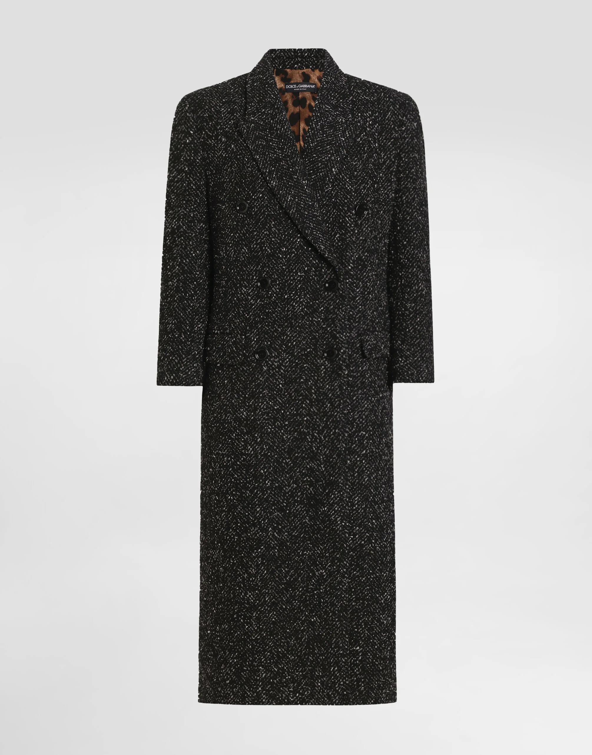 This oversized coat is an iconic garment, taken from the archive, which combines tradition and modernity in a timeless design. Perfect for those looking for a touch of classic elegance with a contemporary twist. Oversized double-breasted coat in wool blend chevron: • Multi-colored • Peaked collar • No darts • Central slit • Lined • The model is 175 cm tall and wears size 40 IT • Made in Italy External Composition: 45% Virgin Wool, 30% Polyamide, 25% Silk Internal Composition: 97% Polyester, 3% Elastane