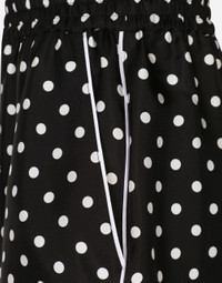 The FW24/25 Mambo Collection is rewriting the rules of Italian elegance, merging the sophisticated style of the 1940s and 1950s with the iconography of American pin-ups. The unmistakable polka-dot motif takes center stage, coming in a variety of shapes and sizes and adorning tulle, charmeuse, twill, silk and poplin, giving life to looks distinguished by black and white accessories and details. An homage to the beauty of Italy and its traditions, the distinctive details of Dolce&Gabbana’s creations. Silk twill pajama shorts with polka-dot print: • Black and White • Stretch Dolce high waist • Slant front pockets • Inner leg: 15 cm • Hem: 36 cm • The model is 175 cm tall and wears a size IT 40 • Made in Italy The difference in the print placement that you may find on this product is a feature of Dolce&Gabbana’s “Handmade” pieces. A detail that makes every garment or accessory unique and exclusive. External composition: 100% Silk