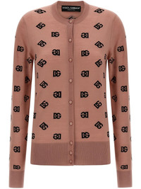 DNA logo-print cardigan Highlights - Powder pink - Front button fastening - Round neck - Long sleeves - Straight hem Made in Italy Composition Virgin Wool 91%, Silk 9%