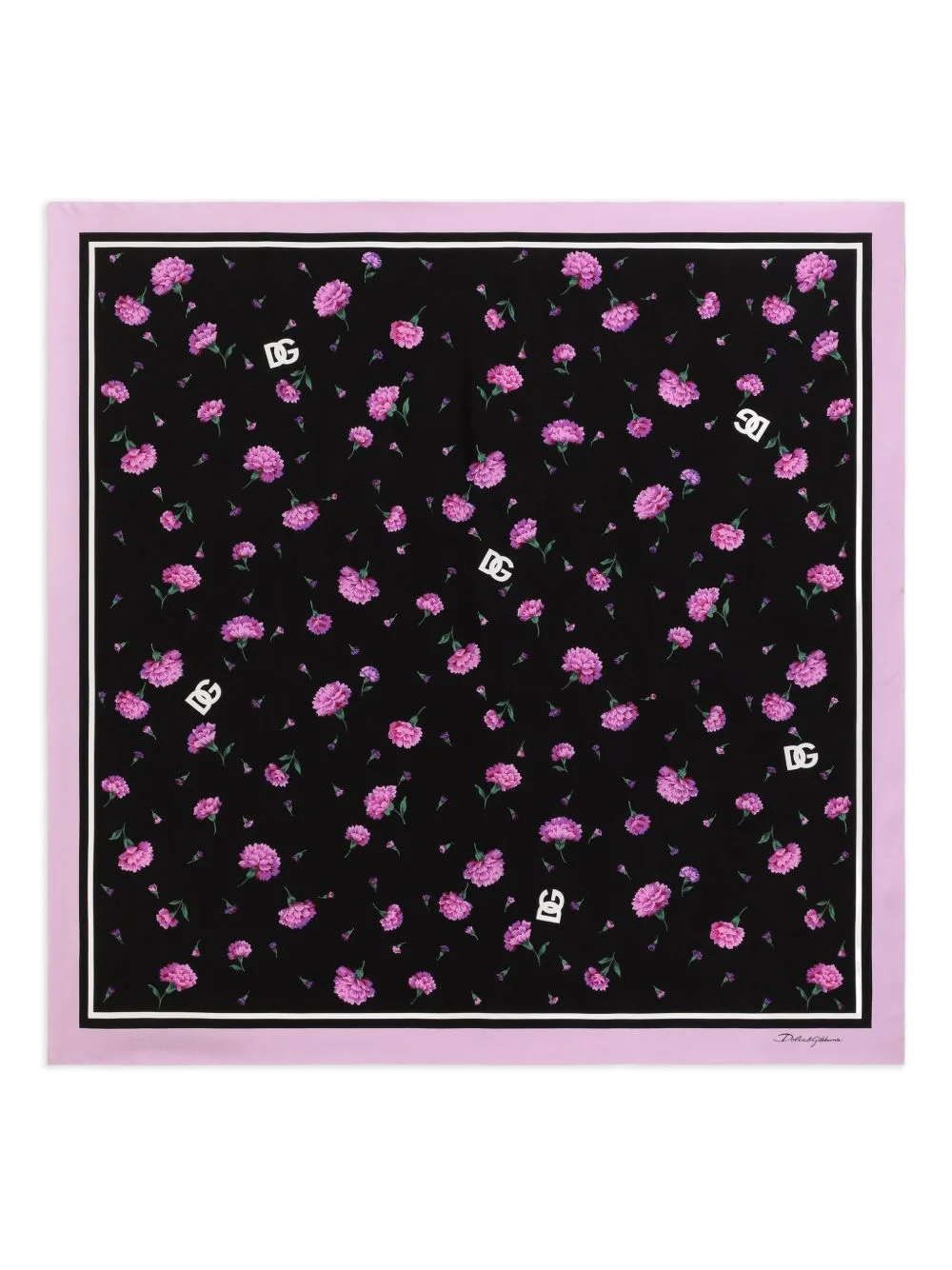 carnations-print scarf Highlights - Black - Carnations print - Logo detail - Border detail Made in Italy Composition Silk 100% SIZE & FIT Measurement LENGTH 35.43 in(90 cm) WIDTH 35.43 in(90 cm) Washing instructions Read Manufacturer Guidelines