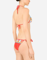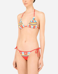 The vibrant Carretto print with its bright colors is the absolute star of this bikini that features an unpadded triangle bikini top and thong bikini bottoms with adjustable string ties in fine spandex fabric: • Adjustable triangle bikini top that ties on the neck and back • Thong bikini bottoms with adjustable string ties on the sides • Branded DG aglets in nickel-free gold-plated metal • DG logo in nickel-free gold-plated metal on the front side • Matching PVC pouch • Made in Italy Care And Details External composition: 75% Polyamide 25% Spandex
