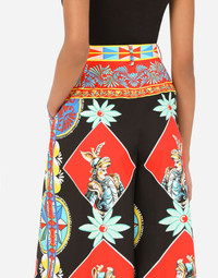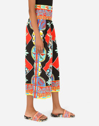 The bright and vibrant colors are kissed by the Sicilian sun on these comfortable wide-leg pajama pants that come in cotton poplin: • “Dolce” high-waisted • Back pocket • Inner leg: 40 cm - 15.7 inches • The model is 175 cm - 68.9 inches tall and wears a size IT 40 • Made in Italy Care And Details External composition: 100% Cotton