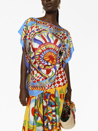 abstract-print silk blouse Crafted from soft silk, this blouse from Dolce & Gabbana is cut in a flowy silhouette for AW23. The garment is defined by a bold abstract print and colourful design. Highlights - Multicolour - Silk - Abstract pattern print - Round neck - Short draped sleeves - Straight hem Made in Italy Composition Silk 100%