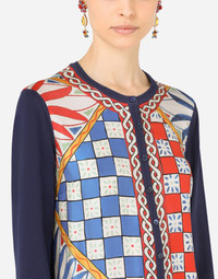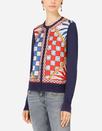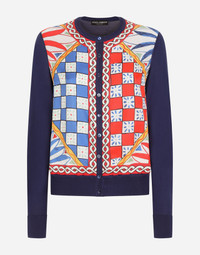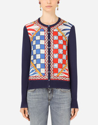 Carretto-print silk and twill cardigan