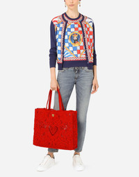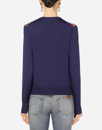 This cardigan, embellished by a silk twill scarf detail, will turn heads with the multi-colored palette of the Sicilian Carretto print: • 18-gauge knit • Round neck • Long sleeves • Regular fit • Fine-rib trims • The piece measures 60 cm - 23.6 inches from the collar seam on a size IT 40 • The model is 175 cm - 68.9 inches tall and wears a size IT 40 • Made in Italy Care And Details External composition: 100% Silk