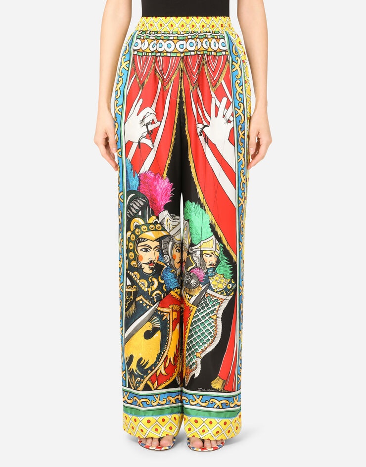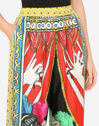 The bright and vibrant colors are kissed by the Sicilian sun on these comfortable, wide-leg pajama pants that come in fine silk twill: • High stretch waist • Slant pockets • Inner leg: 77 cm - 30.3 inches • Hem: 30 cm - 11.8 inches • Faux fly • The model is 175 cm - 68.9 inches tall and wears a size IT 40 • Made in Italy Care And Details External composition: 100% Silk