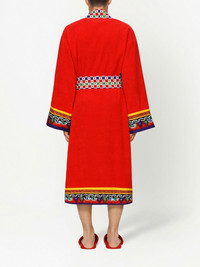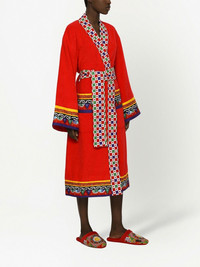 terry bath robe Made in Italy from plush cotton terry cloth, this robe from Dolce & Gabbana is adorned with a folklore-inspired Carretto Siciliano design, found throughout the house's collection and defined by its lively colour scheme. Highlights - Red/multicolour - Cotton - Contrasting trim - Shawl lapels - Belted waist - Long sleeves - Two front patch pockets - Straight hem - Long length - When buying this unisex item, keep in mind that it is graded in standard men's sizing Made in Italy Composition Cotton 100%