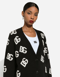 The DNA collection is distinguished by timeless shapes, bringing together three concepts: Sicilian flair, tailoring and sensuality. Nero Sicilia black and optical white predominate and pair with colors that catapult us onto the island of Sicily and make us dream. The designers channel the timeless wardrobe made up of creations that are instantly unmistakable in their simplicity, presenting us with sophisticated beauty loaded with meaning and symbolism that transcends fashion. Cashmere cardigan with DG logo inlay: • Black • 7-gauge knit • V-neck • Straight shoulders • Long sleeves • Patch pockets • Oversize fit • Ribbed hem and cuffs • Horn button fastenings • The piece measures 78 cm from the shoulder seam on a size IT 40 • The model is 175 cm tall and wears a size IT 40 • Made in Italy External composition: 100% Cashmere