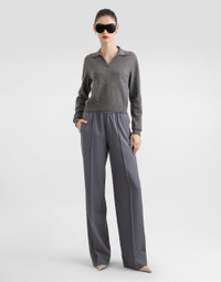 This cashmere pullover offers a touch of luxury and comfort, perfect for adding elegance to any outfit. With a buttonless design and long sleeves, it is ideal for cooler days, while maintaining a sophisticated and timeless style. Brushed stitch cashmere pullover: • Grey • Polo-shirt collar • Long sleeves • Bottom width 50 cm on size 40 IT • The model is 175 cm tall and wears size 40 IT • Made in Italy External Composition: 100% Cashmere