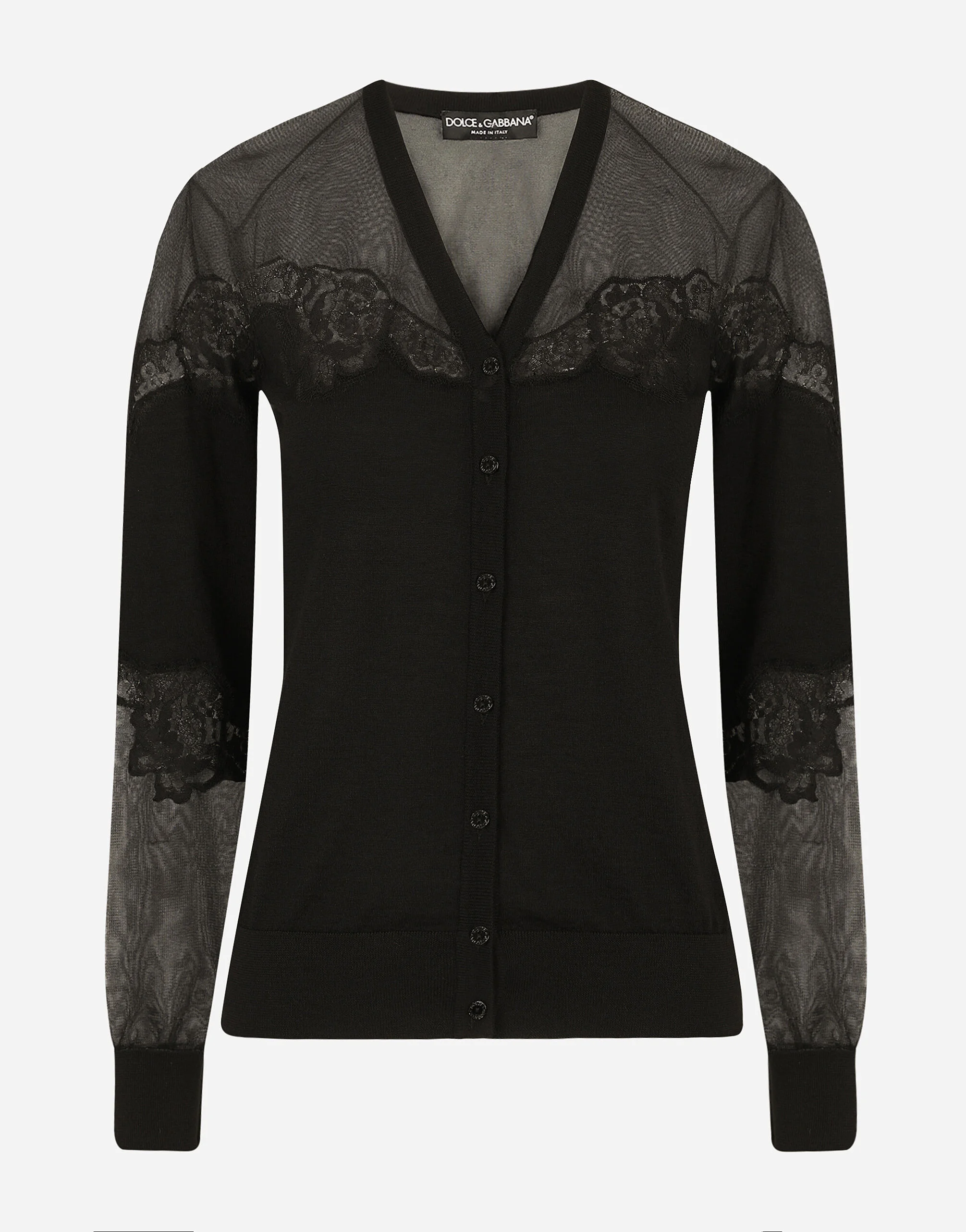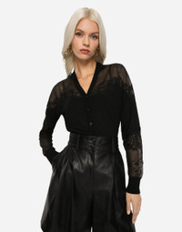 Cashmere, tulle and silk cardigan with lace