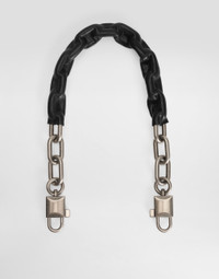 In the Fall/Winter 2025 Fashion Show Collection, shearling jackets, in fur-free versions, reveal slip dresses and create contrast' plays while denim welcomes fabric or Leo print inserts. Sweatshirts are the result of long experimentation with volumes. Evening looks become precious thanks to dresses with special embroideries and luminous touches of sequins and crystals. Sheepskin inserts also unite hats, shoes, and bags, including those with pockets. This multi-colored shoulder bag is the perfect accessory to add a touch of style and functionality to your favorite bag. Bag strap in brass and Calfskin: • Multi-colored • Miami palladium plating • External customization with logoed padlock • Item equipped with a logo bag and a logoed box • Length 61 cm • Made in Italy External Composition: 60% Brass, 20% Zamak, 20% Calfskin
