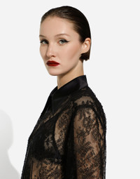 Chantilly lace shirt with silk satin details: • Black • Satin neck and cuffs • Long sleeves • Regular fit • Unlined • Concealed button fastenings • The piece measures 70 cm from the back of the neck on a size IT 40 • The model is 175 cm tall and wears a size IT 40 • Made in Italy Care And Details External composition: 68% Viscose 22% Polyamide 10% Silk