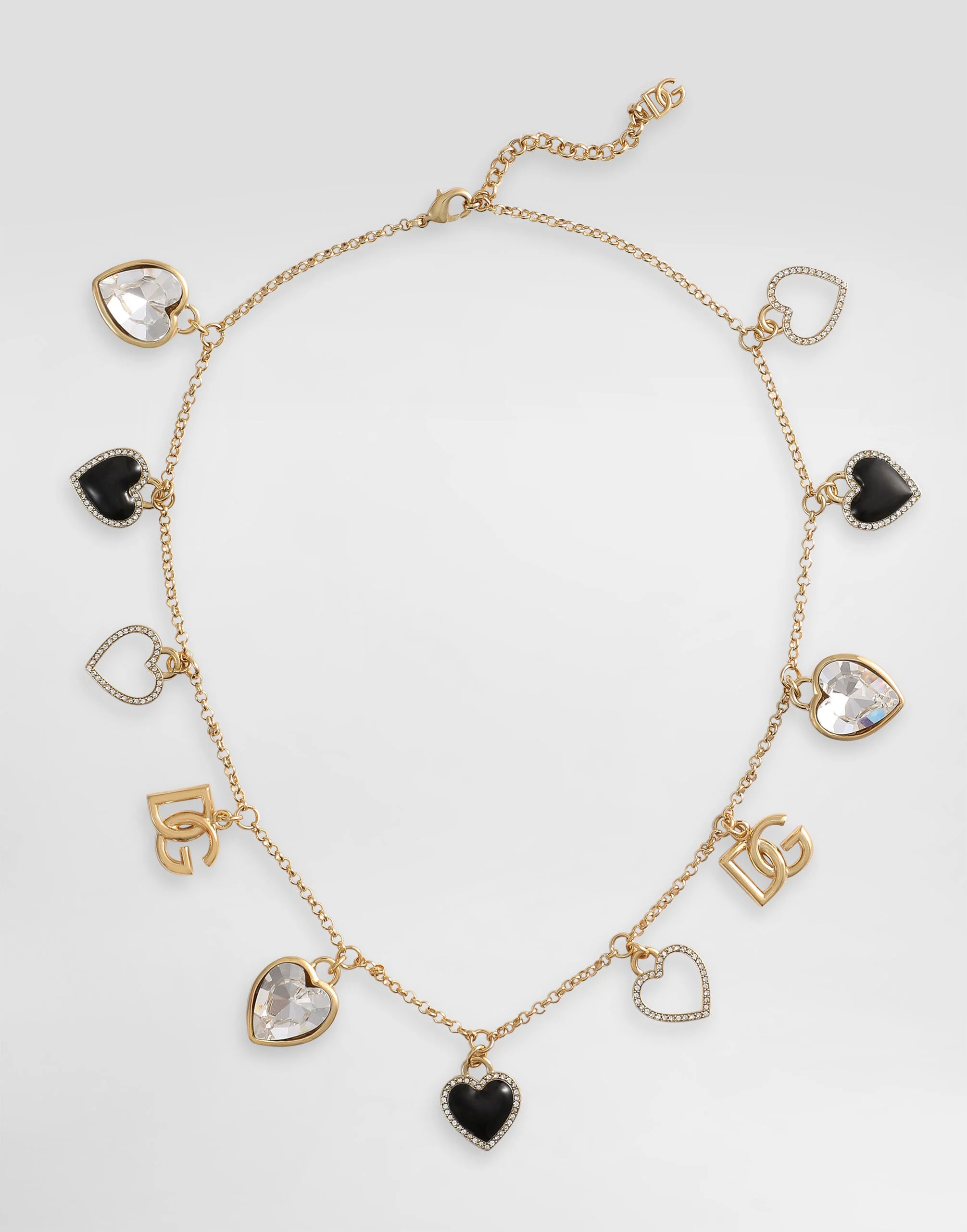 This necklace celebrates Italian craftsmanship with an elegant and timeless design. An accessory that adds a touch of class to any outfit. Italian Tailoring hearts necklace: • Gold • Item equipped with a logoed box • Length 50 cm • Made in Italy External Composition: 70% Brass, 30% Glass