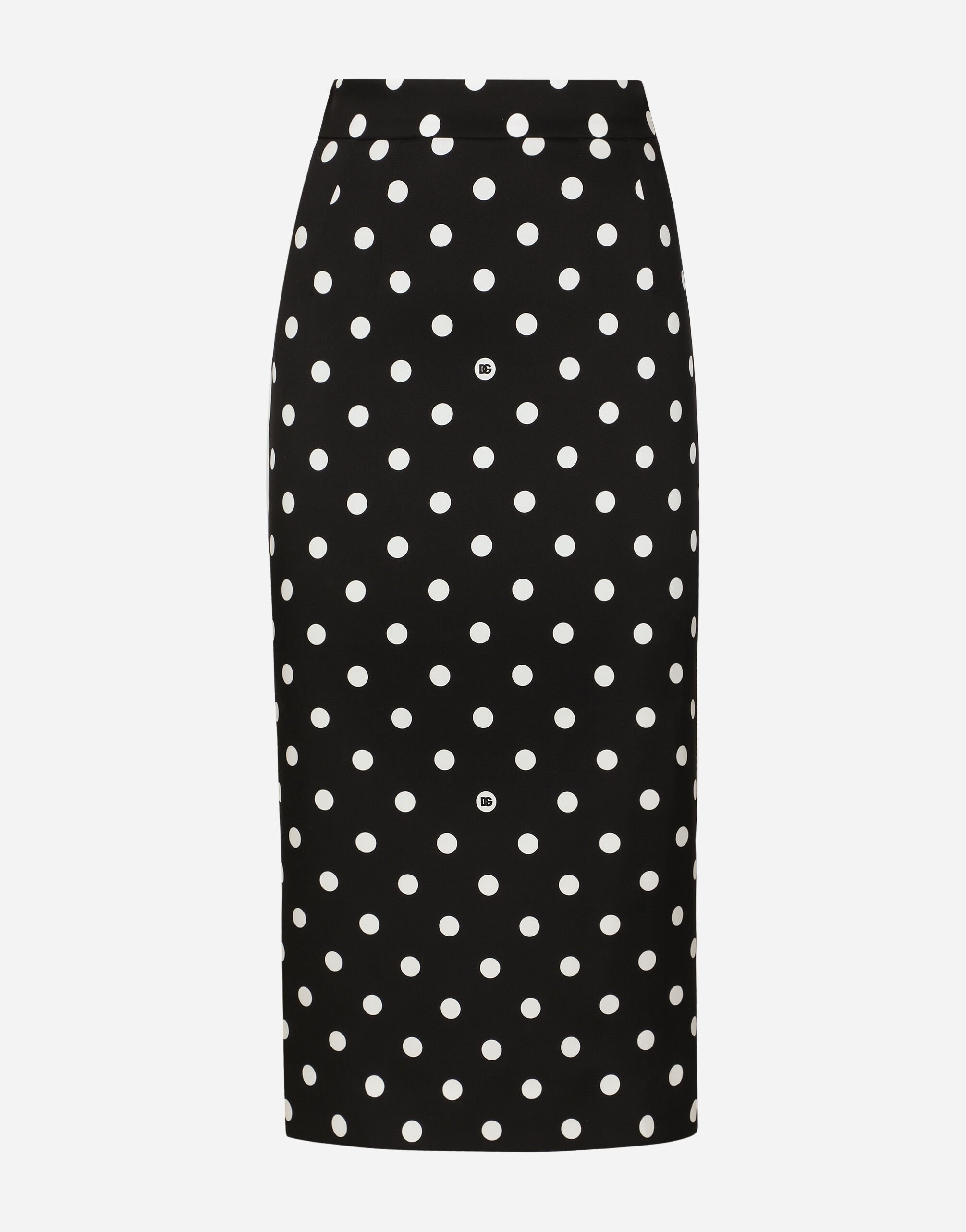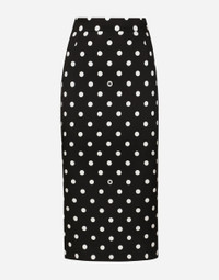 The FW24/25 Mambo Collection is rewriting the rules of Italian elegance, merging the sophisticated style of the 1940s and 1950s with the iconography of American pin-ups. The unmistakable polka-dot motif takes center stage, coming in a variety of shapes and sizes and adorning tulle, charmeuse, twill, silk and poplin, giving life to looks distinguished by black and white accessories and details. An homage to the beauty of Italy and its traditions, the distinctive details of Dolce&Gabbana’s creations. Stretch silk charmeuse calf-length pencil skirt with polka-dot print: • Black and White • High-waisted • Stretch silk lining • Rear zipper and hook-and-eye fastening • The piece measures 75 cm from the waist down on a size IT 40 • The model is 175 cm tall and wears a size IT 40 • Made in Italy The difference in the print placement that you may find on this product is a feature of Dolce&Gabbana’s “Handmade” pieces. A detail that makes every garment or accessory unique and exclusive. External composition: 91% Silk 09% Spandex Internal composition: 91% Silk 09% Spandex