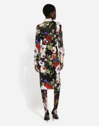 The spirit of the 1960s is taking over the new Flower Power collection. The focus is a head-to-toe floral look built around pairing and layering rose, anemone and floral bouquet maxi-prints. A cosmopolite poised between playful and sexy, this women interprets the austerity and elegance of the 1960s, harking back to boldly opulent imagery that here at Dolce&Gabbana is condensed and reinterpreted through silhouettes, ample proportions and airy shapes, bringing femininity and sensuality to the forefront. Silk charmeuse calf-length skirt with rose garden print: • Multi-colored • High-waisted • Leopard-print stretch silk satin lining • Rear zipper and hook-and-eye fastening • The piece measures 75 cm from the waist down on a size IT 40 • The model is 175 cm tall and wears a size IT 40 • Made in Italy The difference in the print placement that you may find on this product is a feature of Dolce&Gabbana’s “Handmade” pieces. A detail that makes every garment or accessory unique and exclusive. External composition: 94% Silk 6% Spandex Internal composition: 93% Silk 7% Spandex
