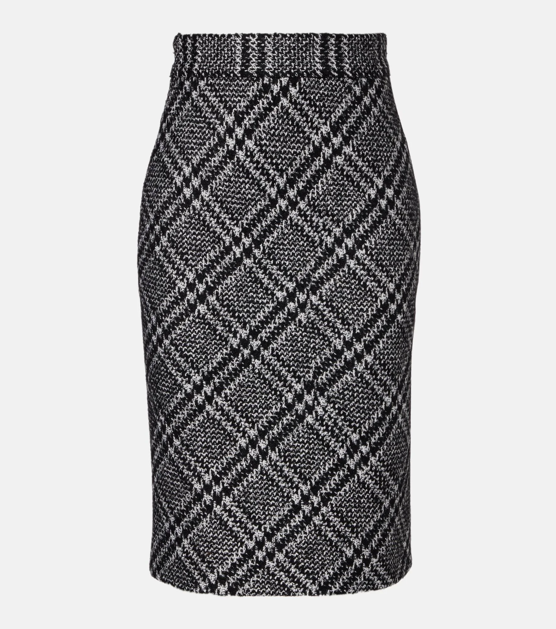 This Dolce&Gabbana miniskirt offers a formal, structured look with its sophisticated knee-length silhouette and checked pattern. The piece is crafted from a soft wool-blend, making it perfect for the cold season. Product Details - Material: 55% wool, 20% silk, 15% llama wool, 5% nylon, 5% mohair - Care instructions: dry clean - Made in Italy - Designer color name: Quadri-Check-Tartan - Item color: black, white - Lining: 93% silk, 7% elastane - Closure: concealed zipper, zipped back, hook-fastening back - Item number: P01052475 Size & Fit - True to size - Non-stretchy fabric - High-waisted - slit length 19cm-7.5" - The model seen in the picture is 178cm-5'10" and wearing a size IT 40