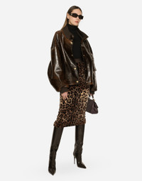 Chenille calf-length skirt with jacquard leopard design