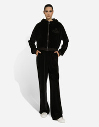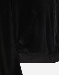 Inspired by 80s fashion photography, the Black Sicily collection masterfully blends masculine and feminine elements, pairing tailored cuts and corset details for the FW 24/25 season. A new vision of the iconic Nero Sicilia black is conveyed through contemporary and sensual looks: jackets and skirts in all-over glen plaid pair with openwork socks, while the 50s-inspired Mun shoes with Eva heel go with the houndstooth Sicily bag featuring crocodile-print leather inserts. Chenille cotton hoodie: • Black • Round neck • Drawstring hood • Long sleeves • Ribbed cuffs and hem • Regular fit • Zipper fastening • The piece measures 49 cm from the center back on a size IT 40 • The model is 175 cm tall and wears a size IT 40 • Made in Italy External composition: 85% Cotton 15% Polyamide